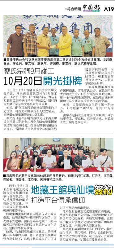 中国报 – 廖氏宗祠9月竣工10月20日开光挂牌 • Fairy Park