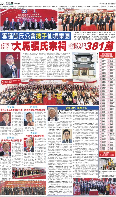 中国报 – 雪隆张氏公会携手仙境集团打造大马张氏宗祠 筹款破381万 • Fairy Park