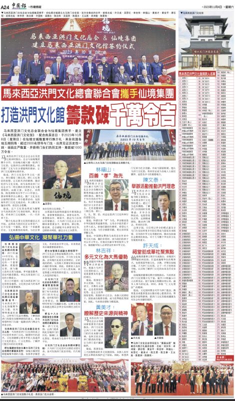 中国报 – 马来西亚洪门文化总会联合会携手仙境集团 打造洪门文化馆筹款破千万令吉 • Fairy Park
