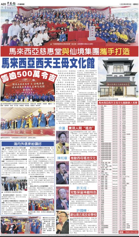中國報 – 馬來西亞慈惠堂與仙境集團攜手打造馬來西亞西天王母文化館籌逾500萬令吉 • Fairy Park