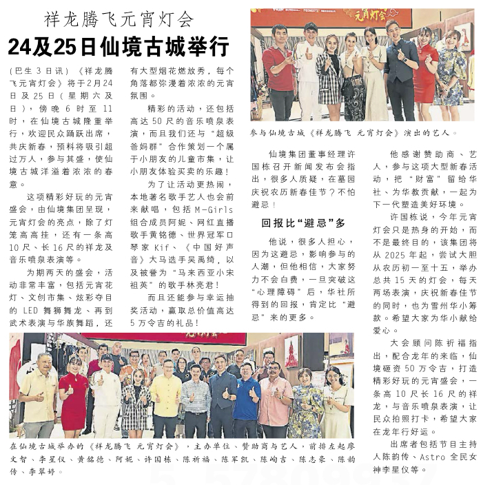 南洋日报 – 祥龙腾飞元宵灯会24及25日仙境古城举办 • Fairy Park