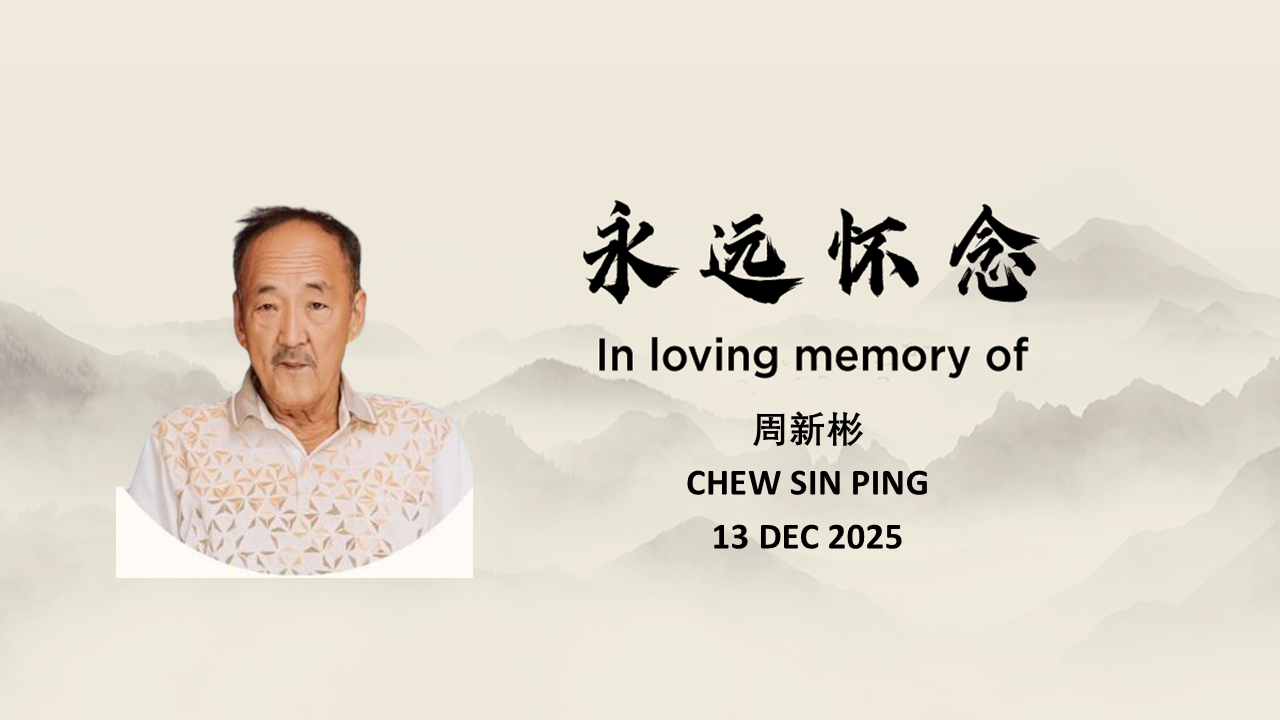 我们最敬爱的至亲周新彬老先生 ,祖籍福建~永春人氏 ,于公元 2025 年 12 月 13 日,上午 6 时 26 分与世长辞,年仅 69 岁。 姻乡戚世友 谊哀此讣闻