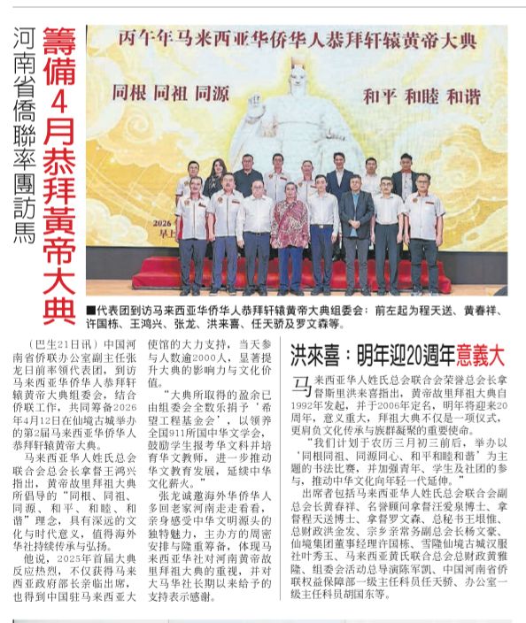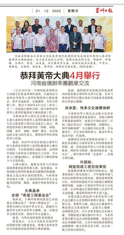 星洲日报 – 恭拜黄帝大典4月举行 河南省侨办率团观摩交流