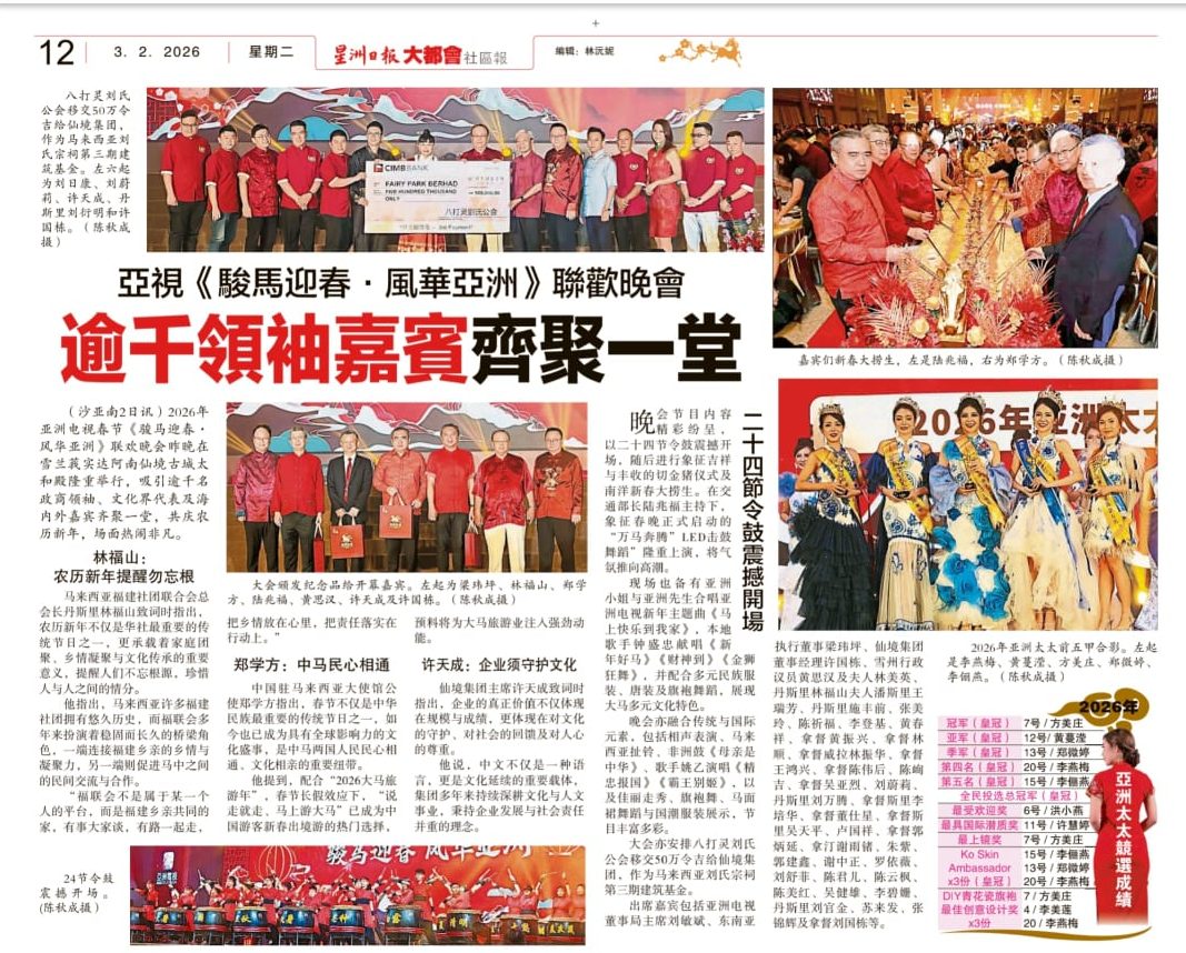 南洋商报 – 政商领袖齐聚迎马年 亚视春晚热爆仙境古城
