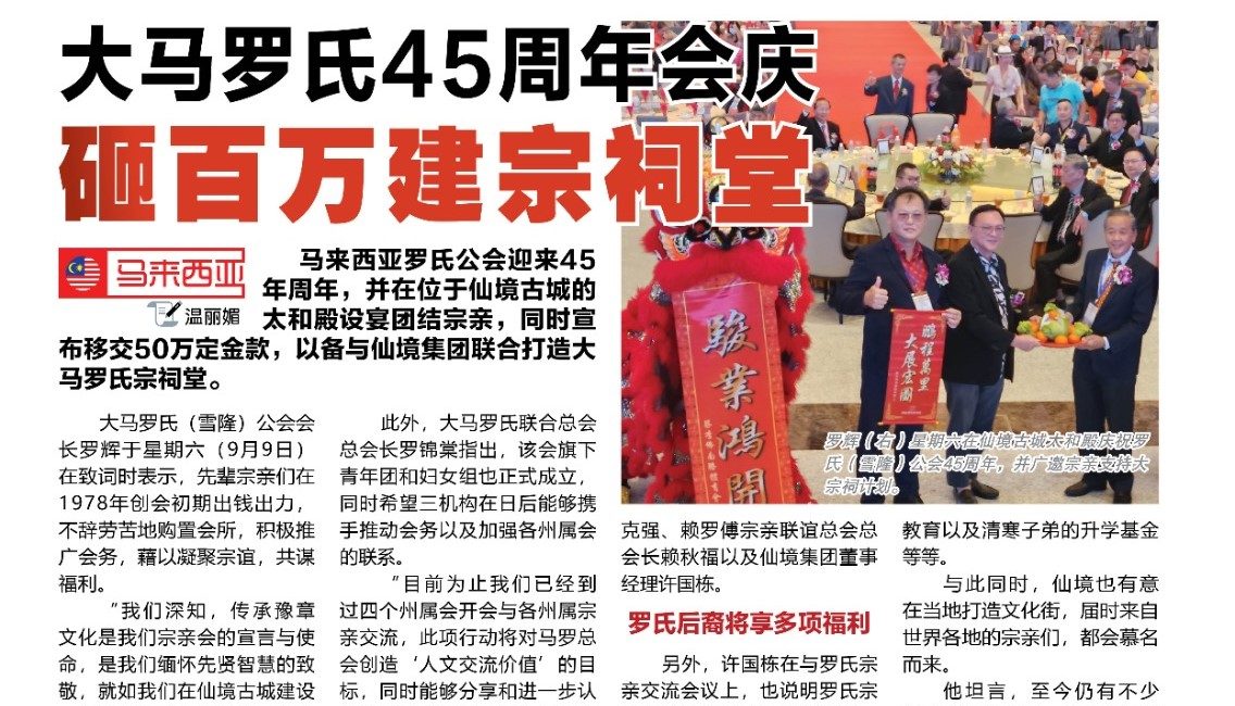 中国报 – 罗锦棠 : 加强宗亲联系 罗氏联总巡回各州开会