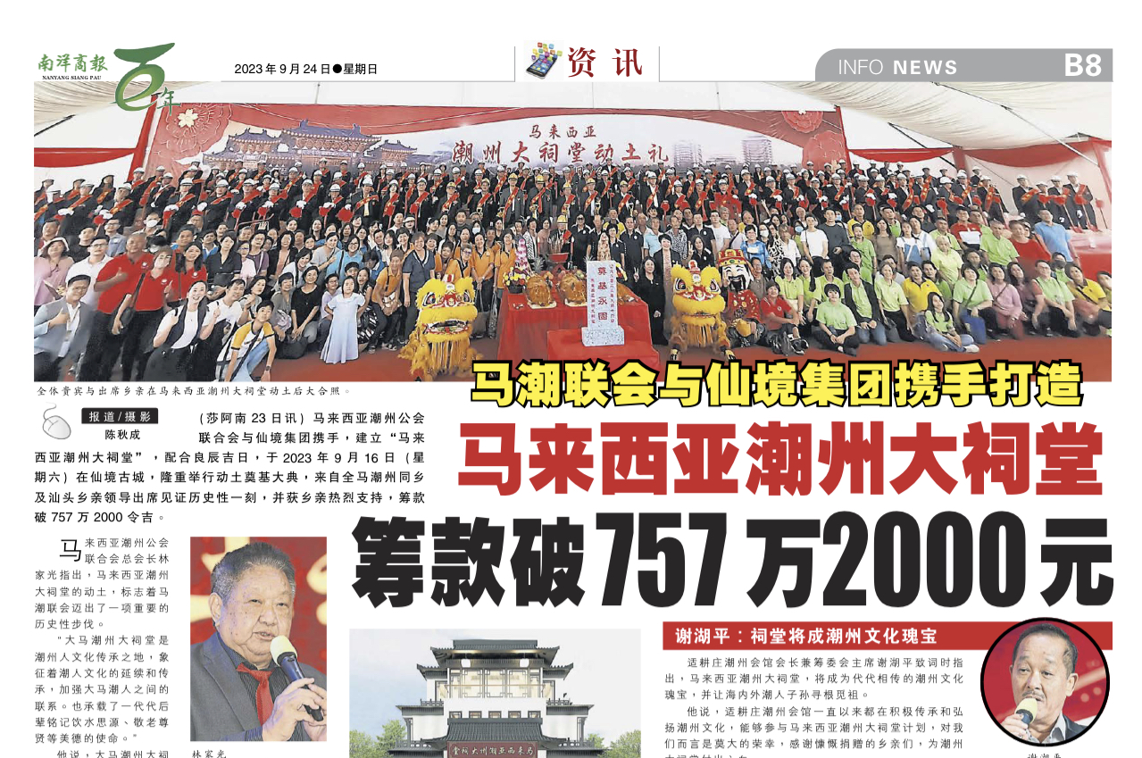 南洋商报 – 马潮联会与仙境集团携手打造 马来西亚潮州大祠堂 筹款破757万2000元