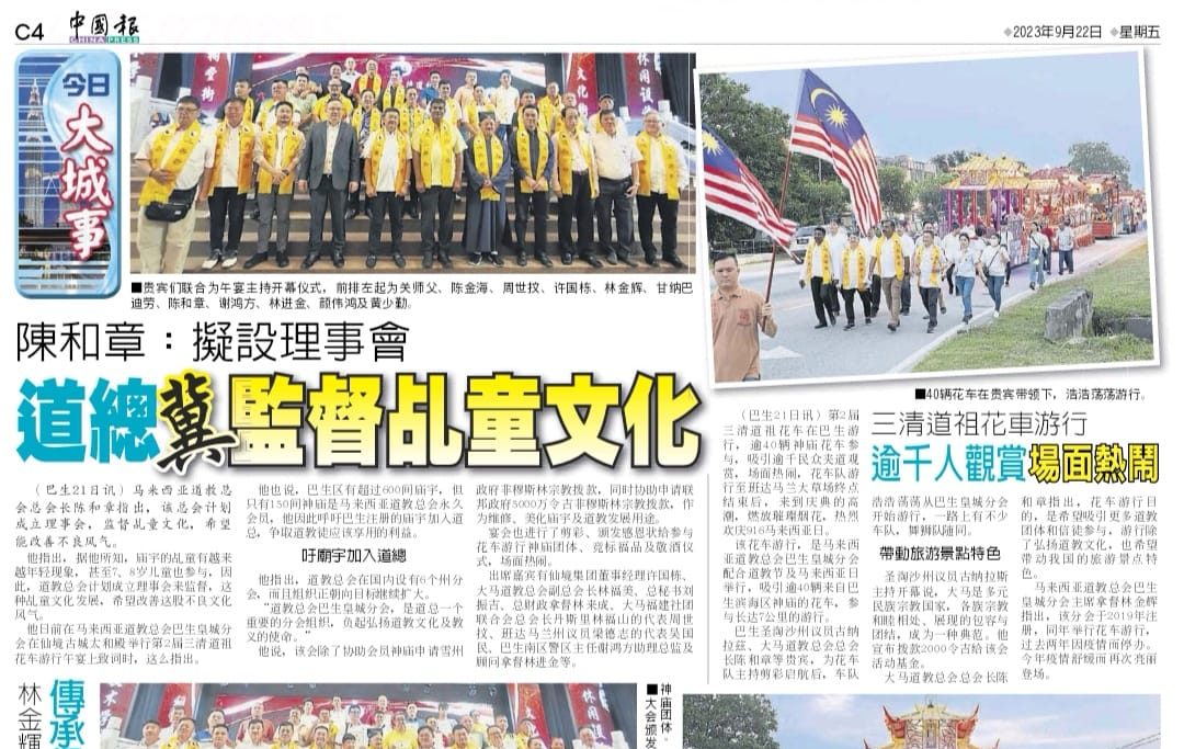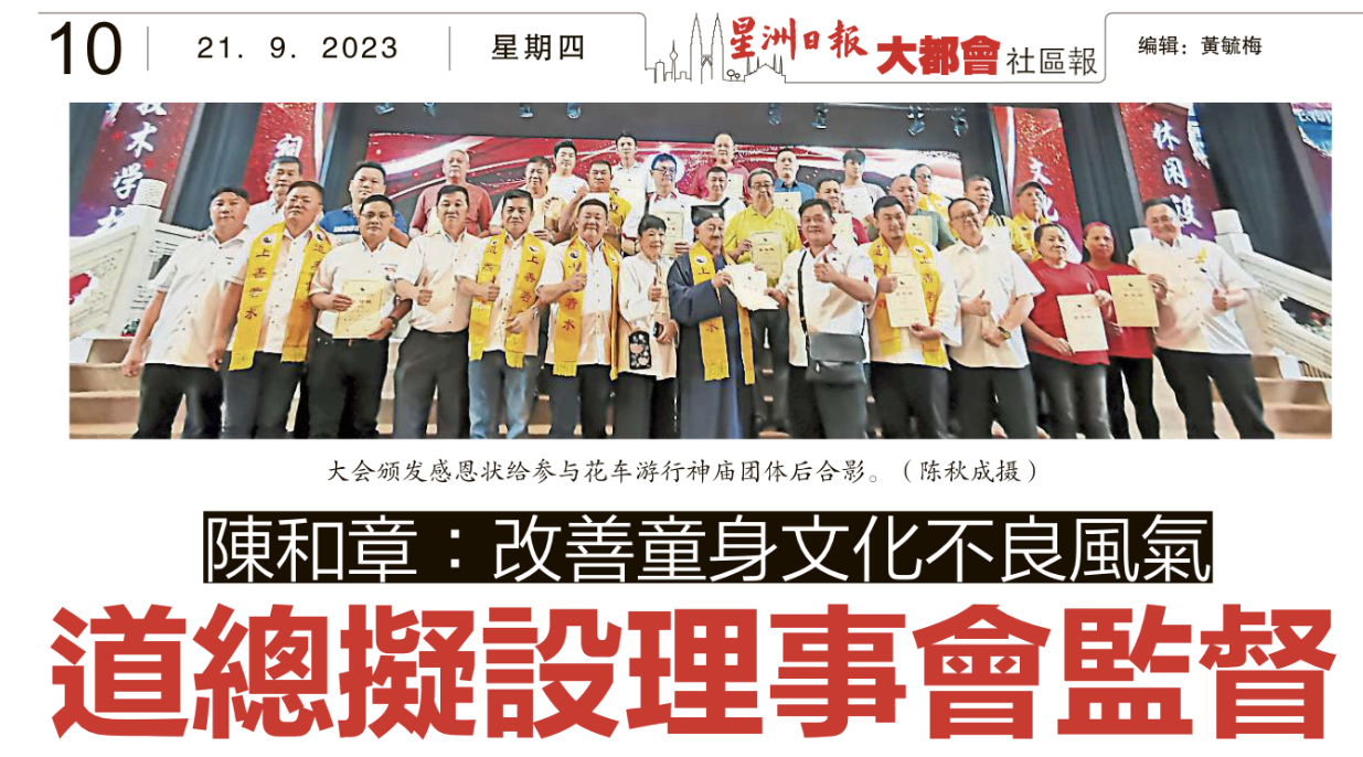 星洲日报 – 陈和章 : 改善童身文化不良风气 道总拟设理事会监督