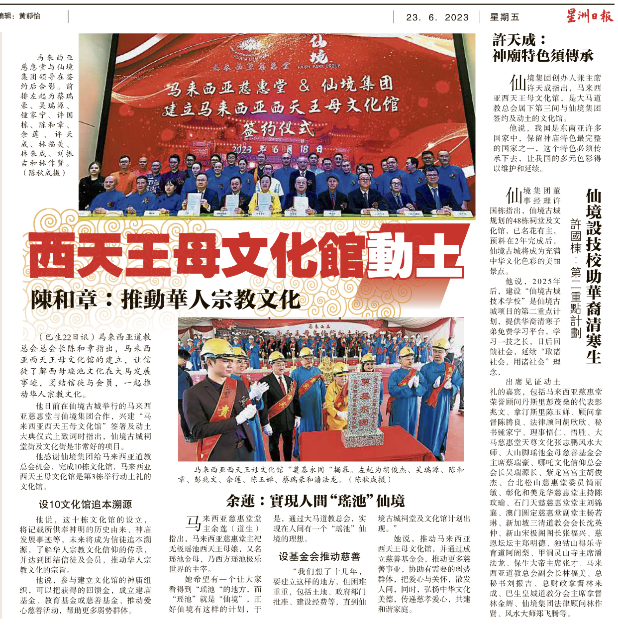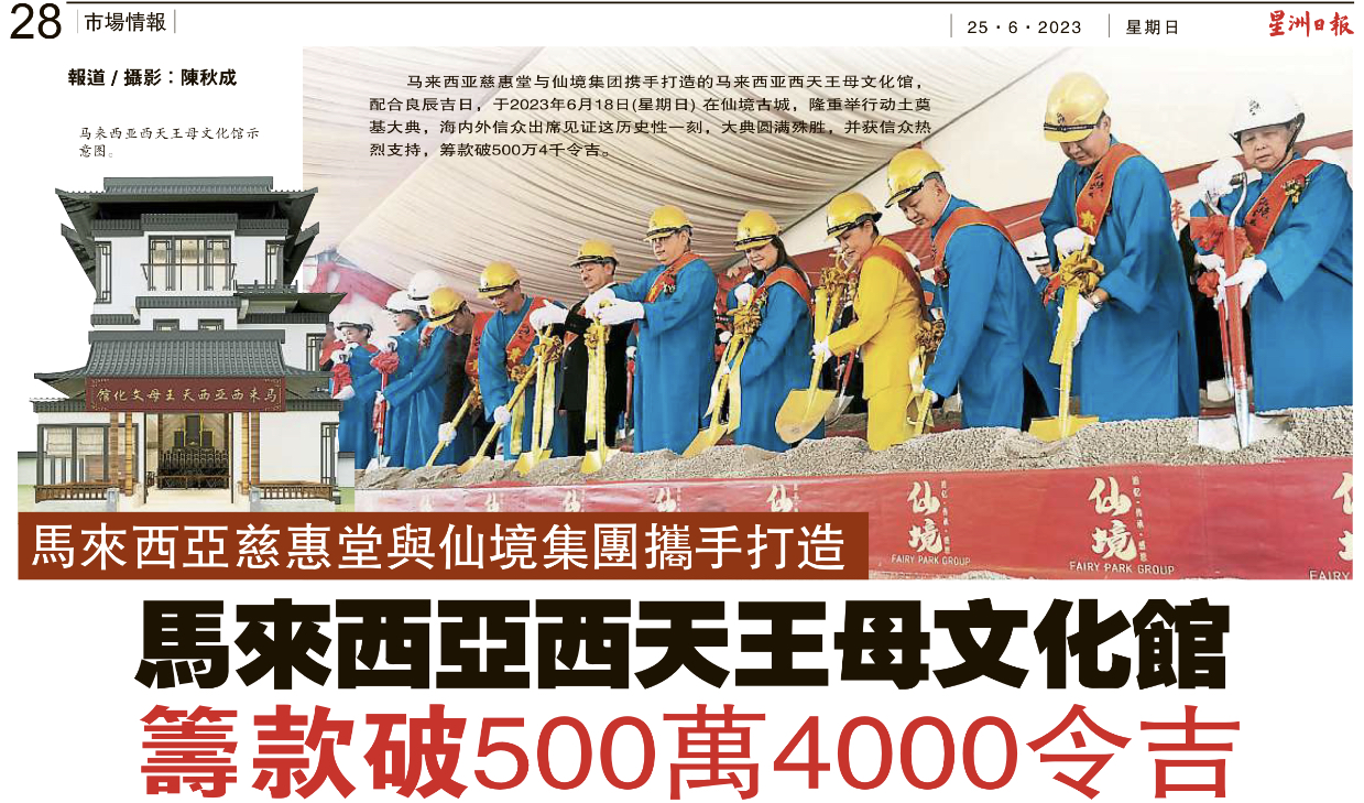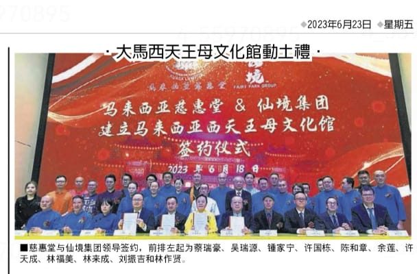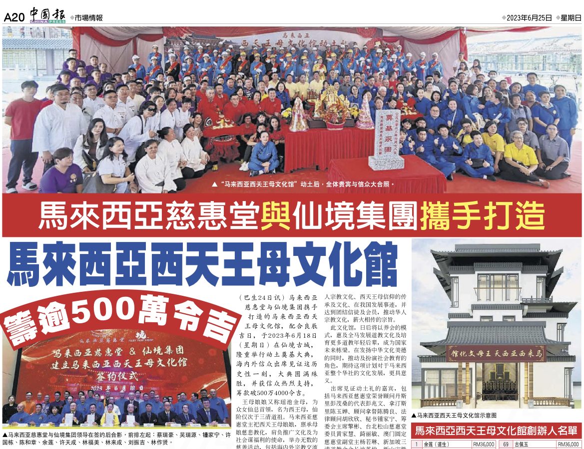 中國報 – 馬來西亞慈惠堂與仙境集團攜手打造馬來西亞西天王母文化館籌逾500萬令吉