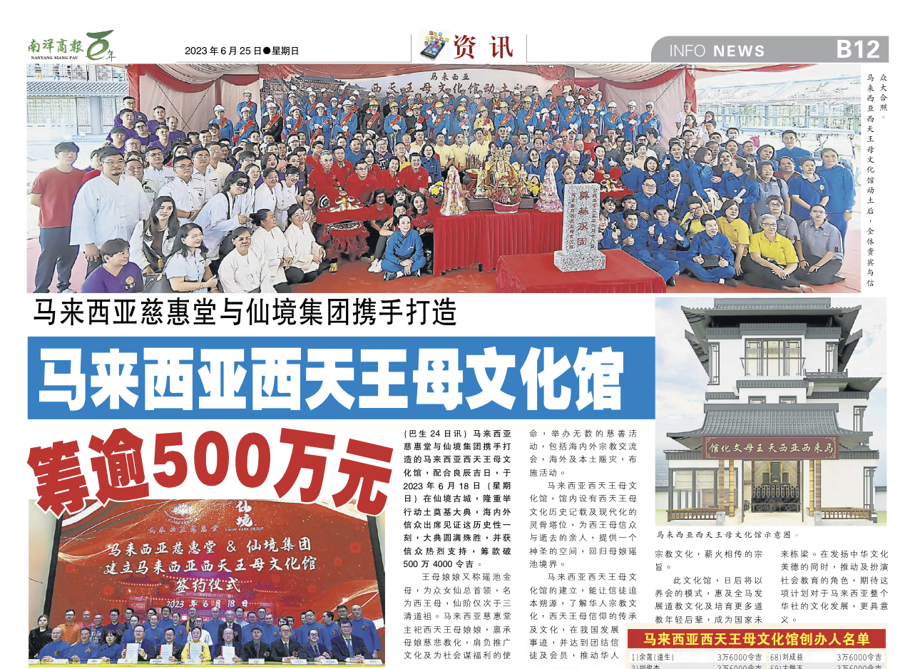 南洋商報 – 馬來西亞慈惠堂與仙境集團攜手打造馬來西亞西天王母文化館籌逾500萬元